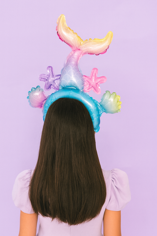 10 Mermaid Foil Balloon Headbands -Kids Party Dress Up Accessory
