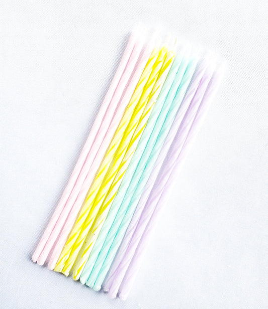 12 Skinny Tall Twist Pastel Birthday Cake Candles