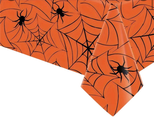 Orange Spiderweb Plastic Halloween Tablecloth