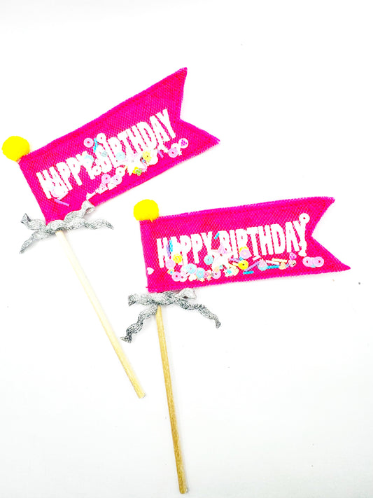 Pink Happy Birthday Sprinkle Cake Flag Toppers