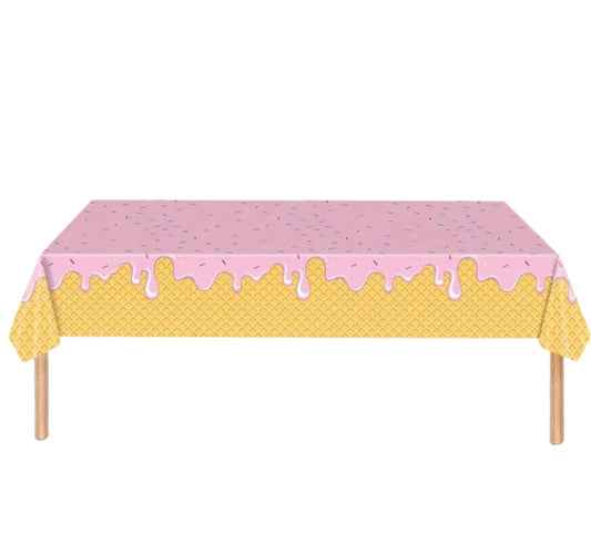 Pink Ice Cream Sprinkles Plastic Tablecloth Cover