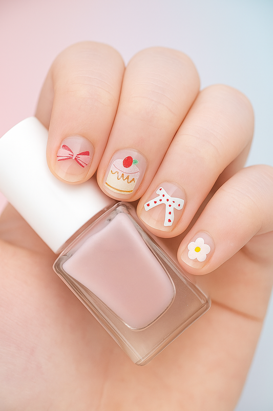 3D Coquette Pink Bow Cake Nail Sticker Set