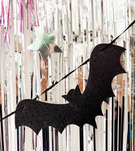 Black Glitter BOO Bat Bunting – Halloween Kids Party Decoration