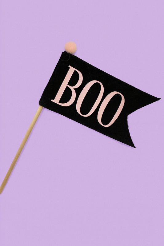 Black Velour BOO Cake Flag – Halloween Cake Topper