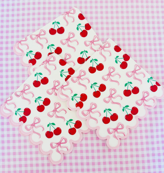 Cherry Pink Bow Napkins Scalloped Coquette Party