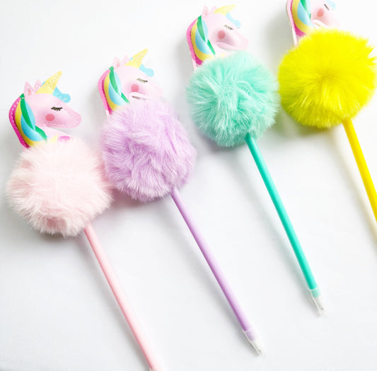 Cute Unicorn Pastel Fluffy Pom Pom Pens