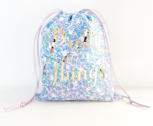 Floral Gold Pretty Things Lilac Fabric Drawstring Gift Bag