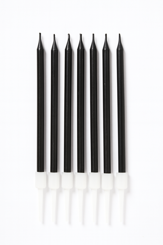 Skinny Black Birthday Candles with Holders – Pack of 6